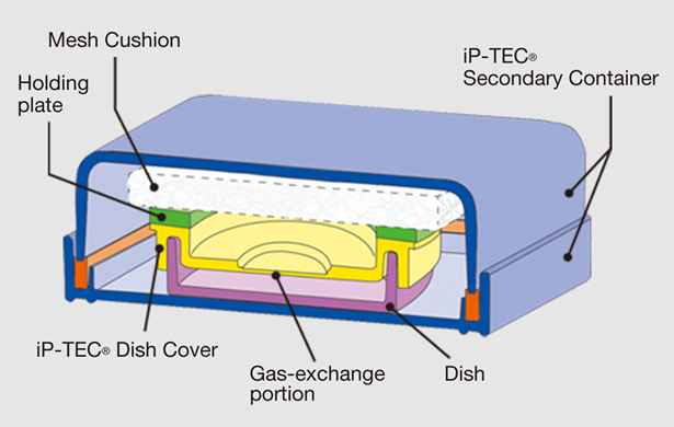 Polycarbonate container. Its excellent airtightness enables transportation while maintaining CO2 concentration of approximately 5% inside the container.