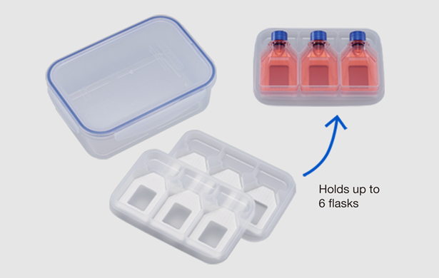 A secondary container that can hold up to six iP-TEC Flasks-25.